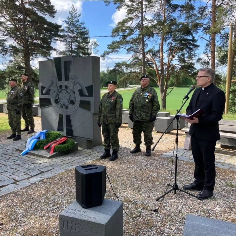 Kappalainen Marith Leppäkari-Lindberg muistutti puheessaan maan puolustamisen tärkeydestä ja veteraanien muistamisesta. Kanttori Sami Nieminen lauloi komeasti Täällä Pohjantähden alla ja Suvivirren.